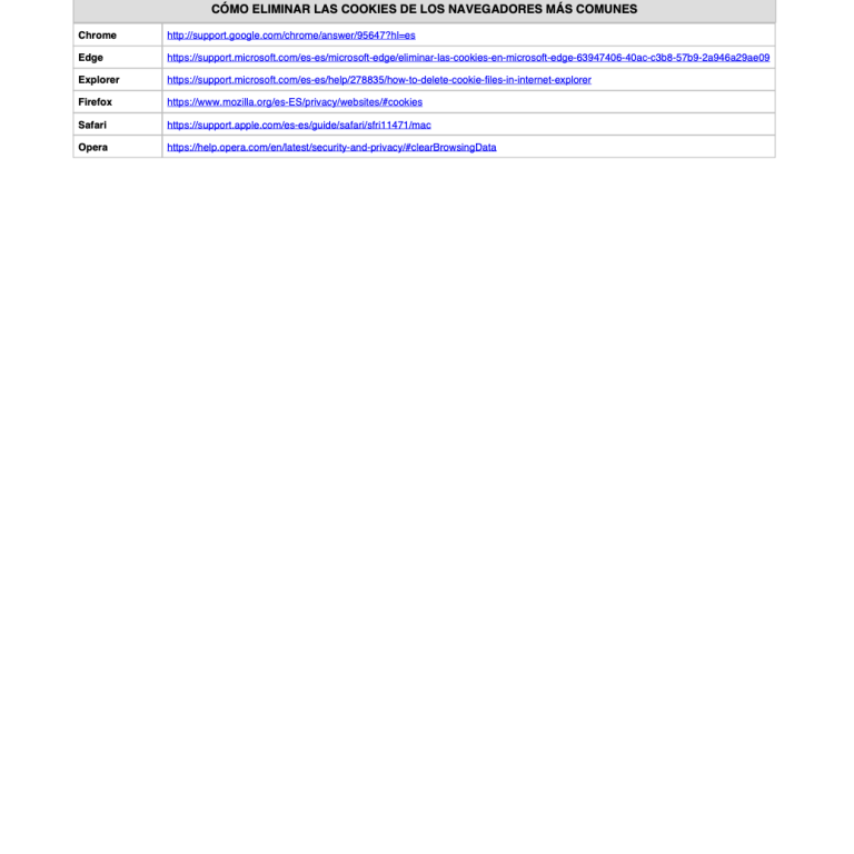 Las cookies y otras tecnologías similares tales como local shared objects, flash cookies o píxeles, son herramientas empleadas por los servidores Web para almacenar y recuperar información acerca de sus visitantes, así como para ofrecer un correcto funcionamiento del sitio. Mediante el uso de estos dispositivos se permite al servidor Web recordar algunos datos concernientes al usuario, como sus preferencias para la visualización de las páginas de ese servidor, nombre y contraseña, productos que más le interesan, etc